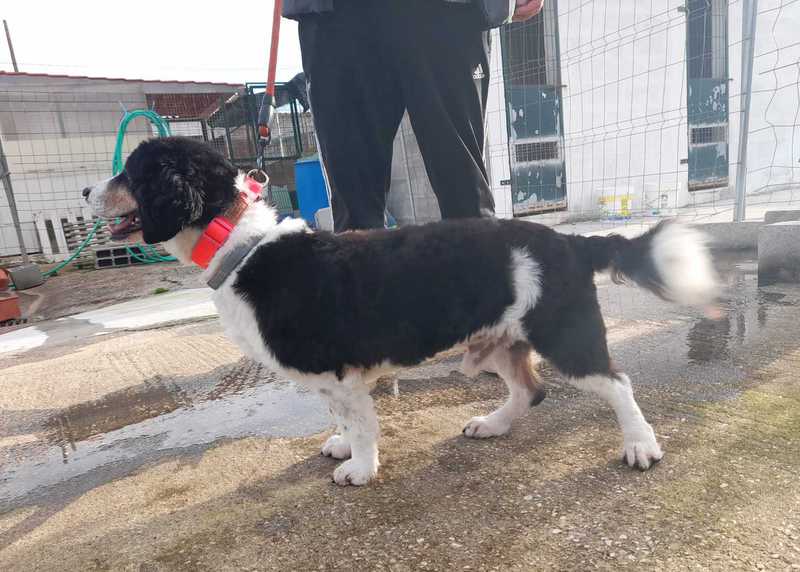 Hund mit dem etwas längeren Fell - ist etwas offener als Saturno. Das Geburtsdatum der Brüder wurde auf den 1. 1. 2017 geschätzt, sie wiegen um die 26 kg bei 52 cm Schulterhöhe. Welcher