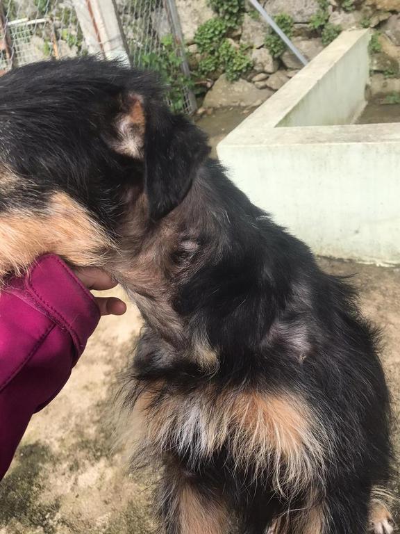 Buddy ist ein kleinerer Rüde von ca. 5-6 Jahren und unser absoluter Notfall., er ist 45 cm hoch und wiegt 10 kg. Er kommt von einem Ort wo einfach nur Traurigkeit herrscht. Bei unserem jüngsten Besuch in Portugal haben wir schreckliches gesehen, was selbst Hartgesottene schlucken lässt. Buddy wurde mit tiefen, blutenden Wunden rund um den Hals gefunden. Er ist jetzt in der Klinik und über Tage war nicht klar, ob er überhaupt zu retten ist. Seine Wunden sind so stark infiziert und auch die Speiseröhre leicht in Mitleidenschaft gezogen, dass überlegt werden musste, ob eine Rettung möglich ist. Aber Buddy möchte und soll leben. Er ist ein sehr lieber und freundlicher Hundemann. Er wird sicherlich noch eine Weile behandelt werden müssen und auch noch etwas in der Klinik bleiben müssen. Dennoch möchten wir schon jetzt liebevolle menschen suchen, die auf ihn warten. Buddy verdient sicherlich die allerbeste Familie.
